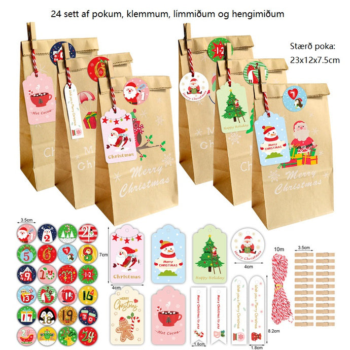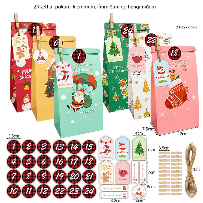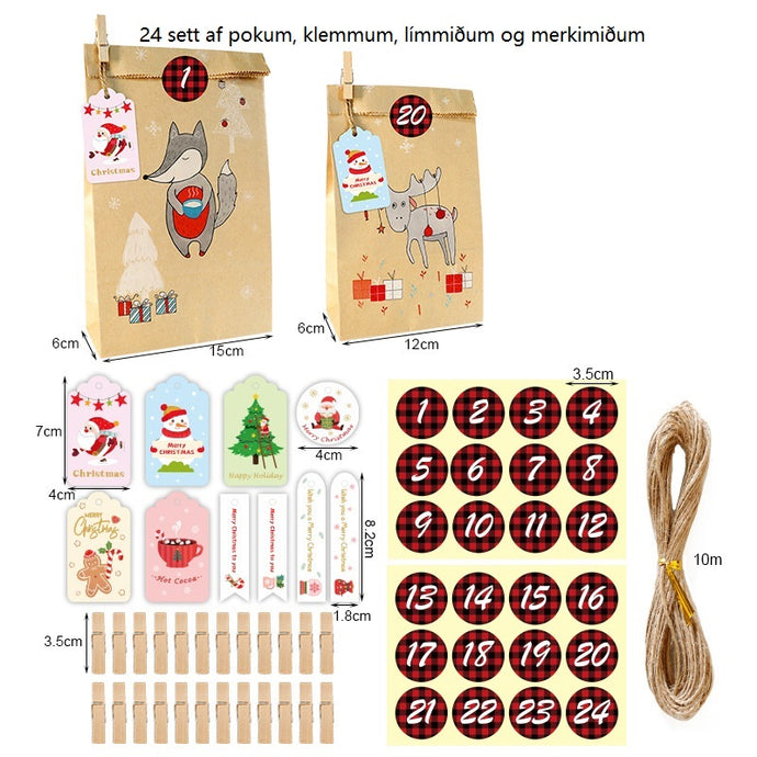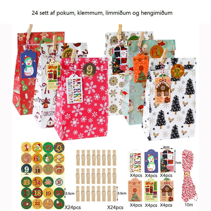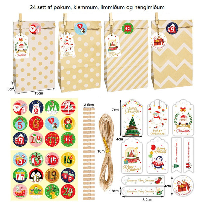 Jóladagatal - 24 pokar með límmiðum, klemmum o.fl. - vol. 01